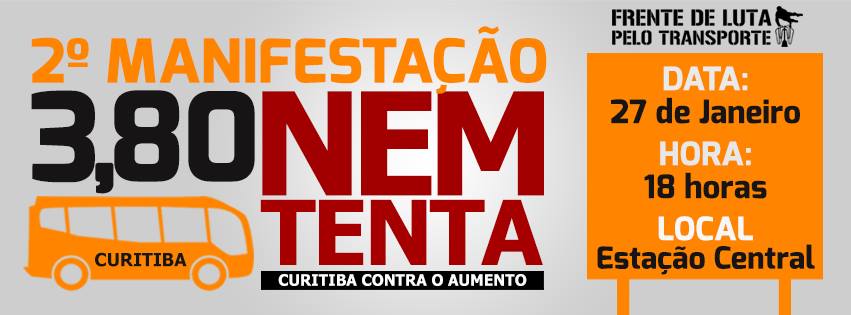 O movimento intitulado “Frente de Luta pelo Transporte” marcou para est quarta-feira a segunda manifestação contra o possível aumento da tarifa do transporte público em Curitiba.