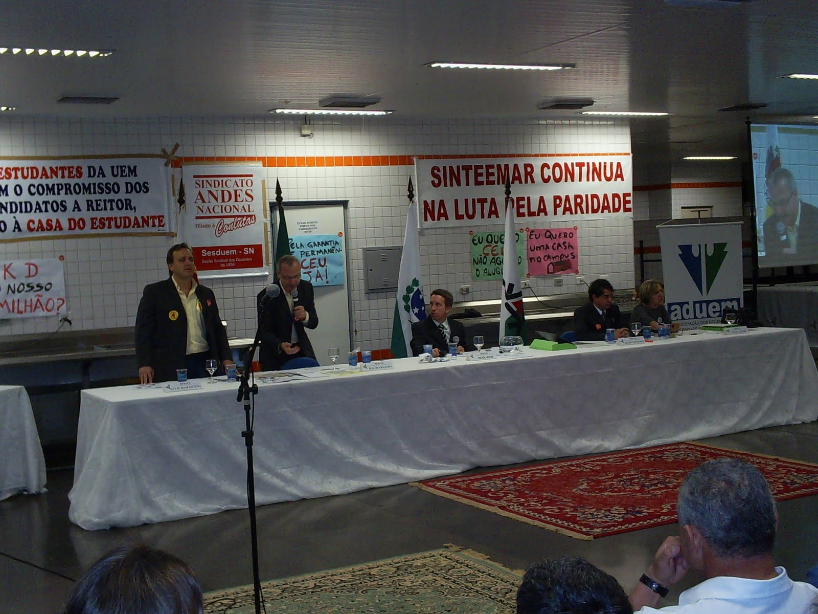 Ontem um grande público compareceu para acompanhar o debate entre os candidatos a Reitor e vice da UEM. O Restaurante Universitário ficou lotado durante toda a noite (fotos acima).