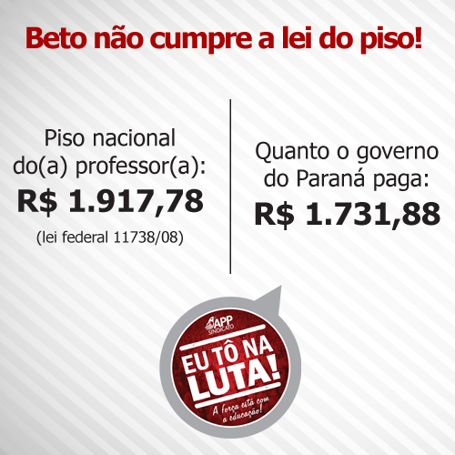 A entidade usou sua página oficial no facebook para postar a imagem acima destacando que o governador não paga o piso nacional “Essa é a verdade que Beto Richa não fala” diz o post.