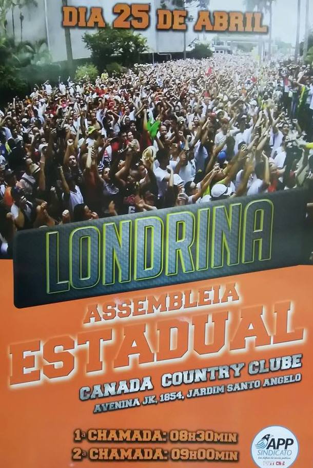 Com o clima tenso que se formou nas escolas com professores e funcionários em relação a esse projeto enviado pelo governo à ALEP, a APP marcou nova assembléia da categoria para o dia 25 de abril na cidade de Londrina.