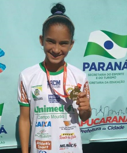 A atleta Tainá Antunes, estudante do Colégio Estadual de Campo Mourão, conquistou na manhã deste domingo, 19, a medalha de ouro nos 1000 metros rasos na fase final do 62º Jogos Escolares do Paraná (JEP’s).