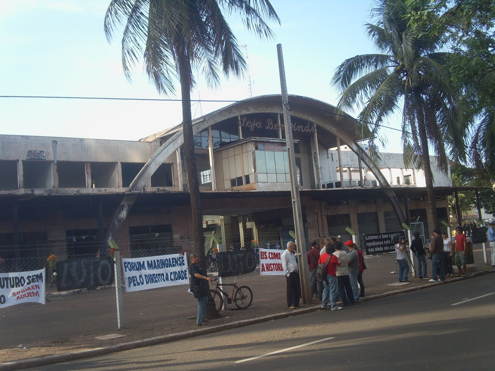 Hoje várias entidades se reuniram para repudiar a demolição da antiga rodoviária de Maringá. A manifestação aconteceu pacificamente e mostrou que a população de um modo geral vem se posicionando contra a demolição do prédio.