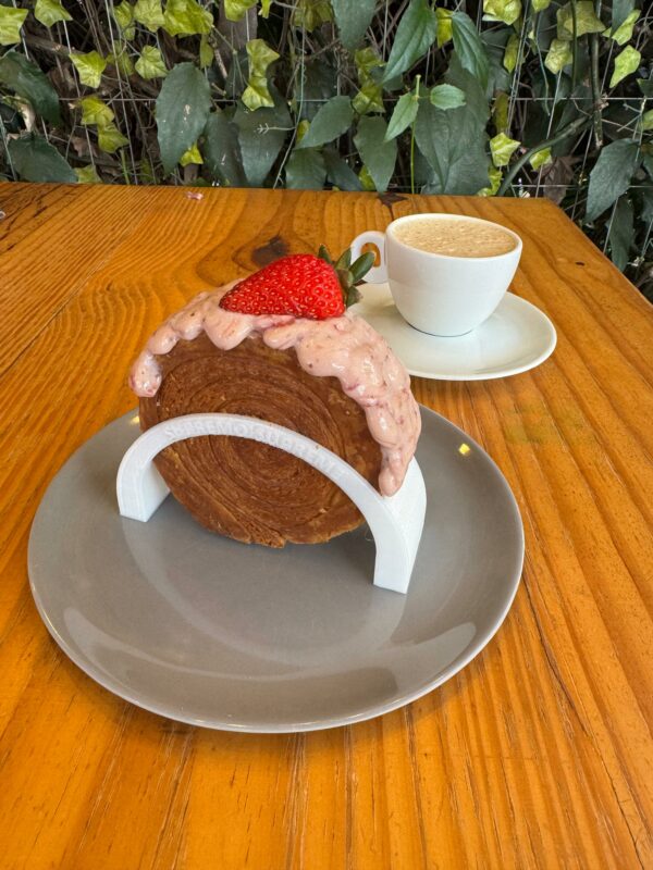 A empresária Bruna Grotti, do ramo de panificação artesanal, também participa desde o primeiro festival. Para a edição 2025, ela serve o “Supreme + Capuccino”. E o detalhe inovador é a impressão em 3D de um suporte, para que o produto seja servido na vertical, da forma como é consumido.