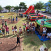 Muitas crianças receberam materiais esportivos.