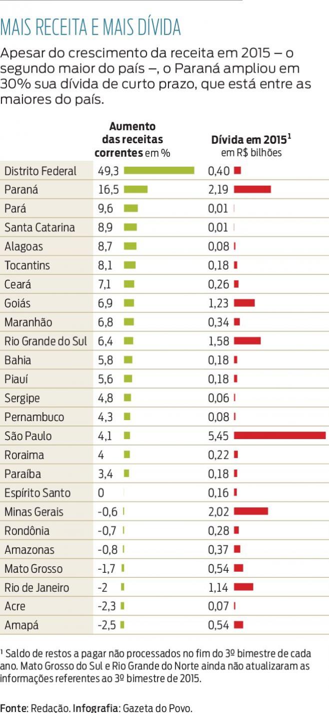 De acordo com dados do Tesouro Nacional, divulgados pela Gazeta do Povo e Jornal de Londrina, ao fim do primeiro semestre a dívida paranaense era R$ 2,19 bilhões, a segunda maior do país, atrás somente do estado de São Paulo.
