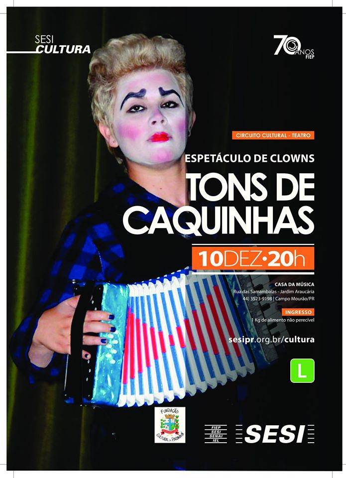 Nesta quarta-feira, 10, as 20h tem espetáculo do Circuito Cultural do SESI em Campo Mourão. Será o espetáculos Tons de Casquinhas que será apresentado na Casa da Música no jardim Araucária.