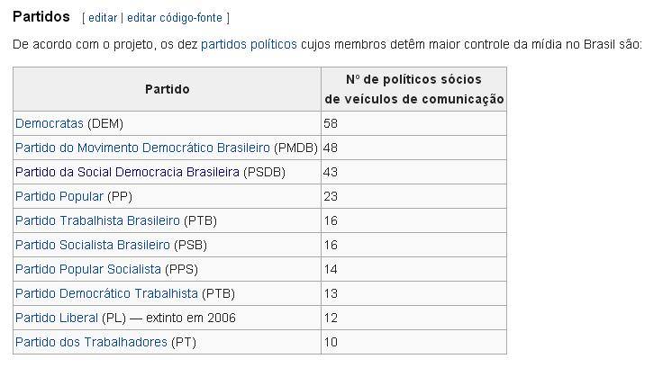 O mesmo estudo (Donos da Mídia) apontou as ligações existentes entre de políticos e a propriedade de meios de comunicação no Brasil.