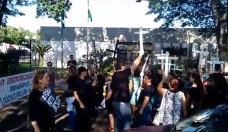 A passeata foi silenciosa, em tom de funeral, por quase todo o percurso que passou pela prefeitura, bancos e chegou em frente ao Fórum da cidade, onde os manifestantes entoaram palavras de ordem (veja o vídeo).