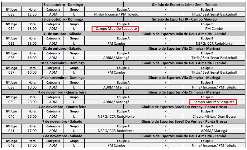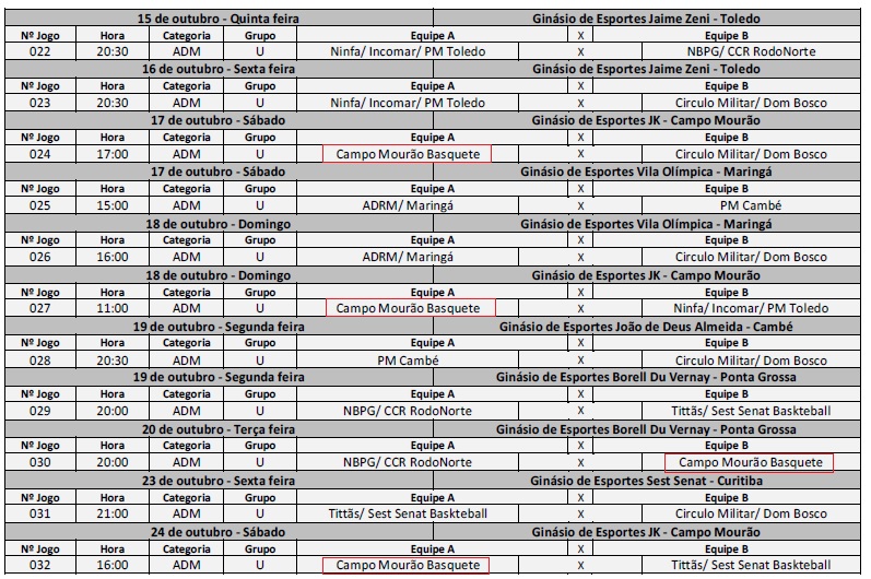 A Federação Paranaense de Basketball divulgou a tabela do segundo turno do Campeonato Paranaense de Basquete. Esta fase começa já nesta quinta-feira, 15, com o jogo entre Toledo e Ponta Grossa.
