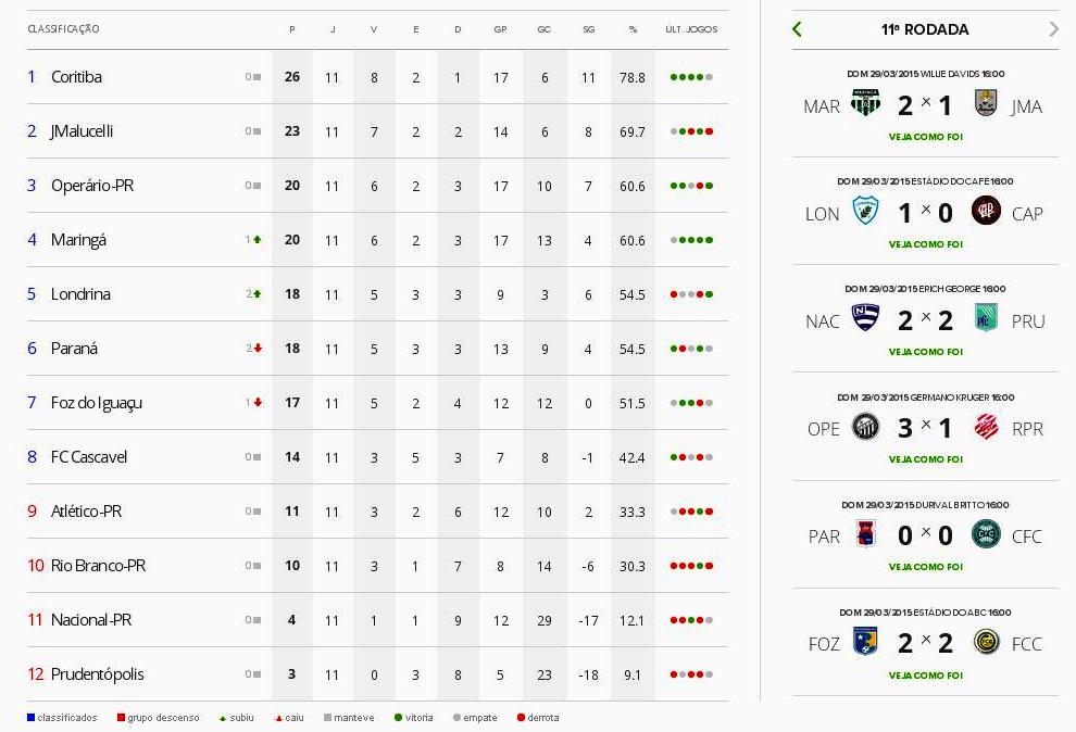 Acabou neste último final de semana a primeira fase do Campeonato Paranaense de Futebol. Foram onze rodadas que agitaram o estado e definiram os oito classificados para a próxima fase.