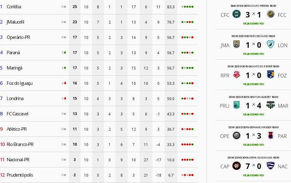O final de semana teve a penúltima rodada do Campeonato Paranaense. Destaque para a super vitória do Atlético Paranaense contra o Nacional de Rolândia por 7 a 0. No entanto, o Furacão ainda está muito perto de disputar o Torneio da Morte. Na última rodada precisará vencer o Londrina, fora de casa e ainda torcer por um tropeço do Foz do Iguaçu diante do Cascavel.