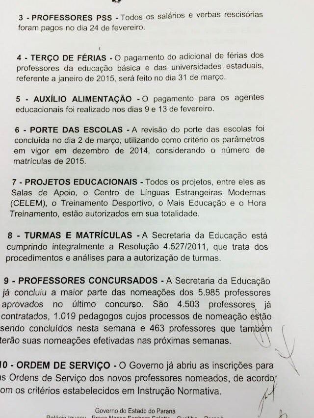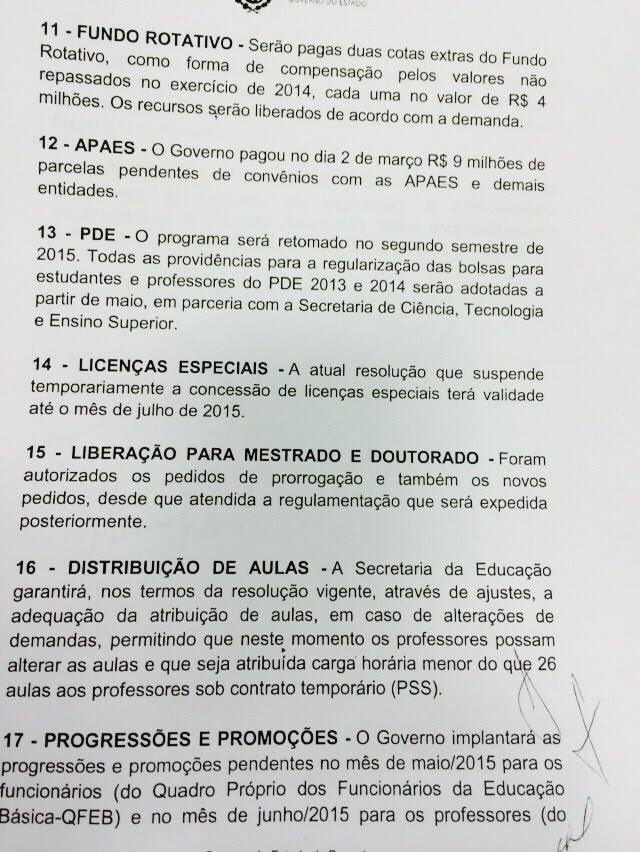 Caso os educadores aceitem a carta como avalista dos compromissos do governo com as pautas da categoria, o movimento pode chegar ao final e o acordo será homologado.