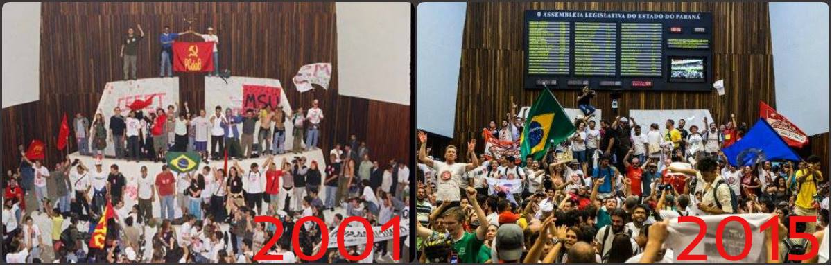 O fato é que no Paraná a história está se repetindo. Quase 15 anos após a primeira ocupação em 2001, manifestantes voltam a tomar o plenário e interromper uma sessão na ALEP.