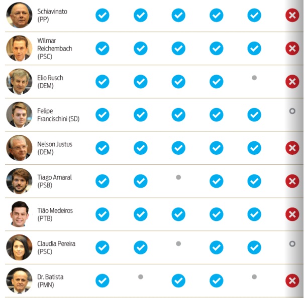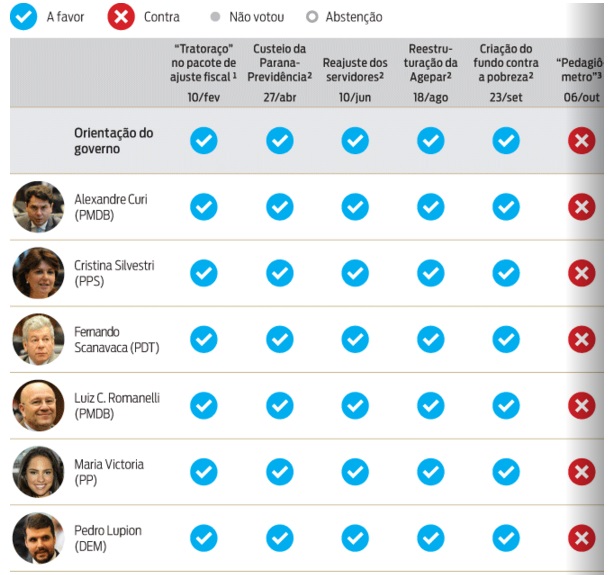 Veja o quadro feito pela Gazeta do Povo e confira se seu deputado está entre aqueles 32 que votaram com o governo Richa.