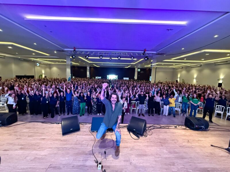 Na palestra “Sem Medo do Futuro”, o cantor Marco Túlio mesclou música ao vivo com reflexões sobre coragem e a capacidade de reescrever a própria história. “Sou filho e esposo de pedagoga e por isso convivo com esse universo da Educação. E os educadores hoje em dia assumem muito mais que a função de ensinar. Venho celebrar esses profissionais, saudar a relevância desse trabalho e trazer um pouco de música para ajudar a refletir sobre a vida”, sintetizou o artista, que elogiou a estrutura da cidade ao prefeito Douglas.