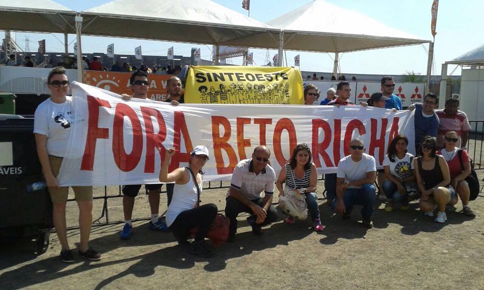 Depois de muita pressão, o acesso foi liberado, mas sem que os manifestantes pudessem levar faixas. Contudo, os manifestantes conseguiram abrir uma faixa no local com os dizeres: “Fora Beto Richa” (foto).