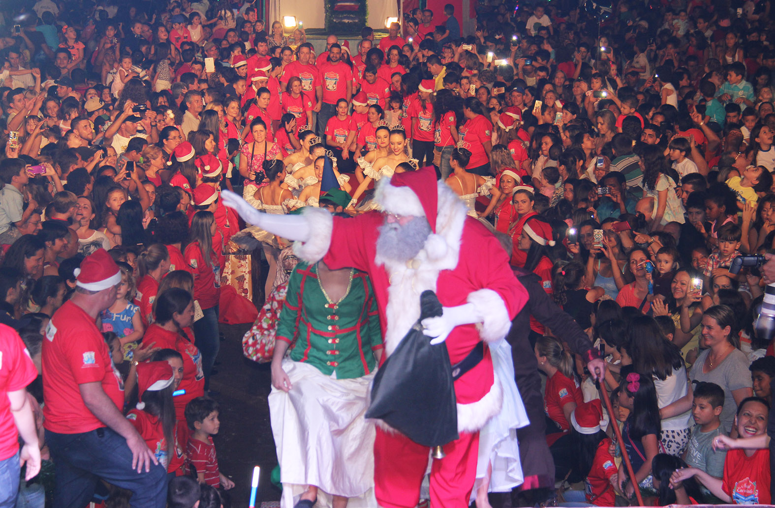 A chegada do Papai Noel dentro da apresentação do Auto de Natal “A Carta de Natálio”, encenado por artistas locais depois de performances da Banda Municipal marcou a abertura da programação especial de Natal em Campo Mourão na noite desta terça-feira 1٥ de dezembro. Depois de ser recebido com festa, com a Praça São José completamente lotada e desejar um feliz natal a todos, o Papai Noel recebeu a chave simbólica do município das mãos da prefeita Regina Dubay (PR). Toda a programação natalina está sendo desenvolvida pela Prefeitura de Campo Mourão, através da Fundacam (Fundação Cultural) em parceria com a Acicam – Associação Comercial e Industrial de Campo Mourão; CDL – Câmara dos Dirigentes Lojistas e Sindicato Empresarial do Comércio Varejista.