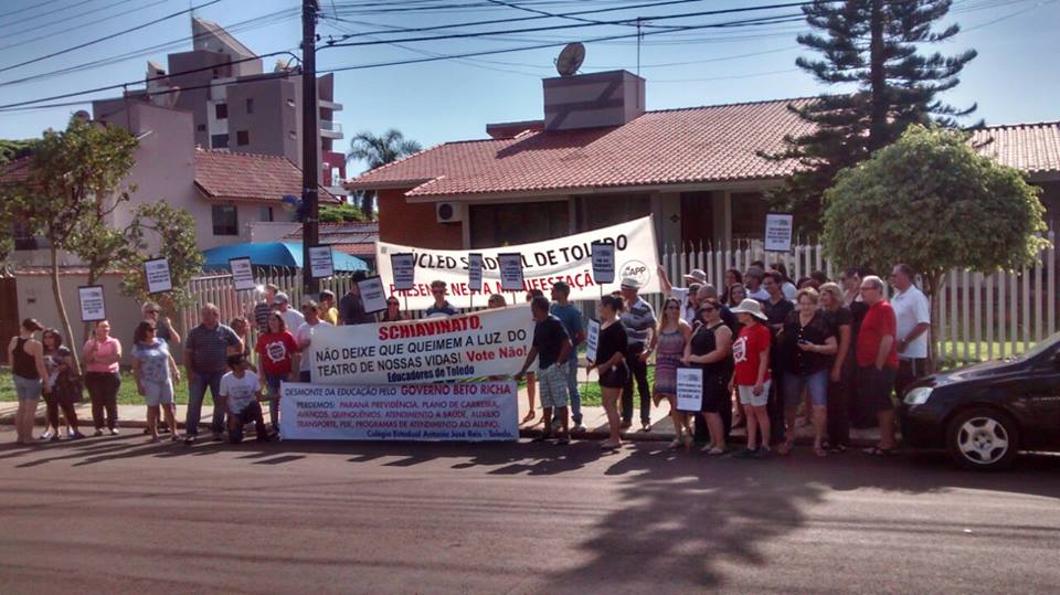 A pressão sobre os deputados no Paraná está aumentando. Em Toledo, professores e funcionários da educação foram à frente da casa do deputado José Carlos Schiavinato (PP) para cobrar que ele vote a favor da educação.