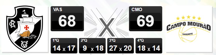 O Campo Mourão Basquete aguarda a decisão da outra vaga na decisão. O outro finalista sai do confronto entre Vasco da Gama e Ginástico de Belo Horizonte. Serão cinco partidas, sendo três no Rio de Janeiro e duas na capital mineira, já que o Vasco ficou com a segunda melhor campanha e, portanto, tem essa vantagem.