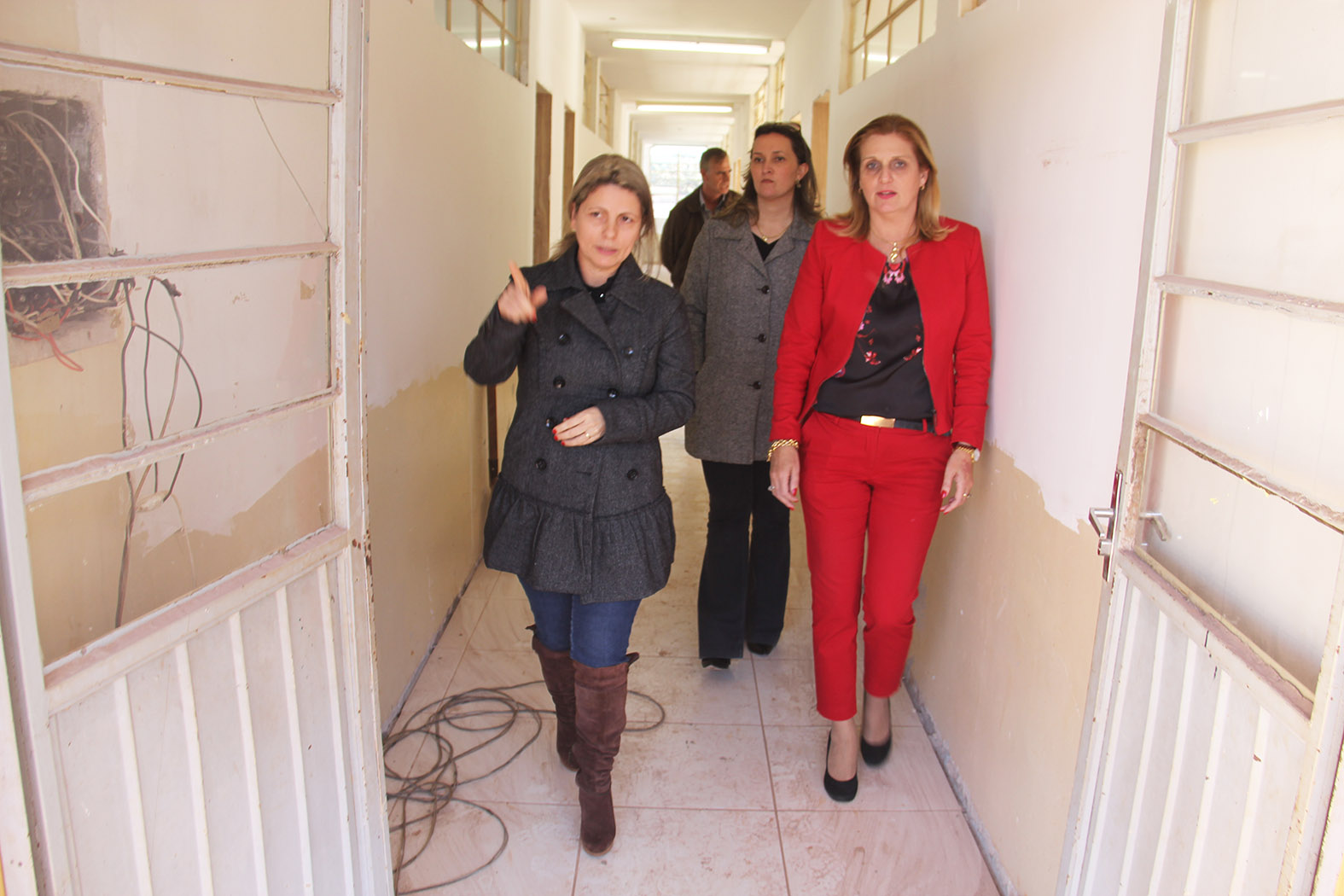 A prefeita Regina Dubay (PR) esteve vistoriando os trabalhos juntamente com a secretária municipal de Educação, Karla Tureck e ex-prefeito Nelson Tureck, na tarde desta segunda-feira, 27.