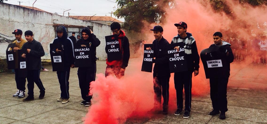 Uma maneira interessante de manter viva a memória daquele dia. Como está no “cartaz escudo” usados pelos estudantes: “Educação em Choque”
