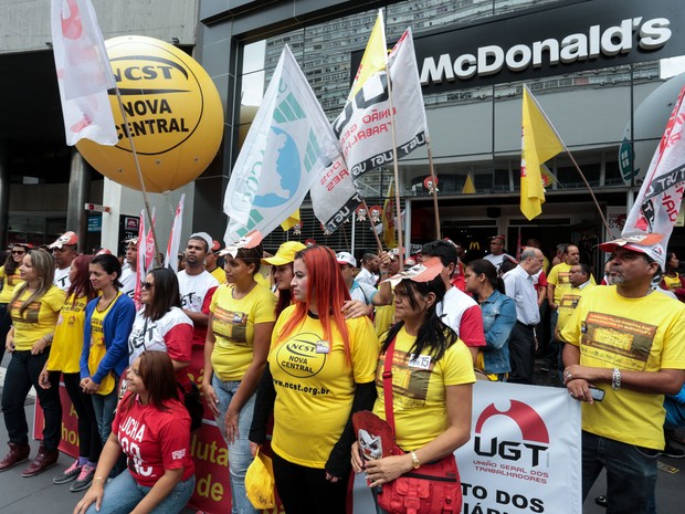 Funcionário do McDonald’s protestaram na Avenida Paulista em São Paulo. Categoria reclama da falta de direitos trabalhistas.