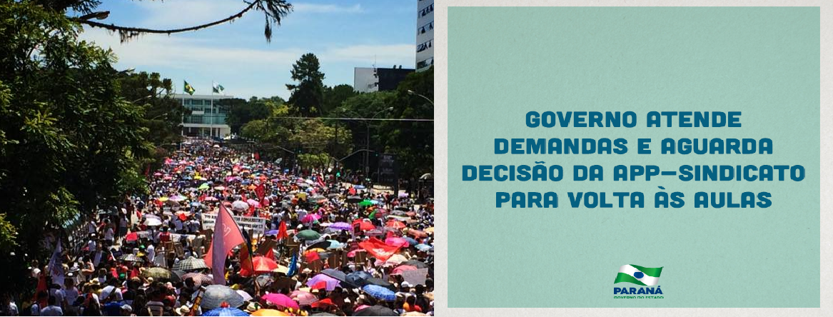 A direção da APP Sindicato soltou nota pública dizendo que “o governo apresentou seus números e suas propostas. A categoria agora terá a responsabilidade de analisar cada uma e, coletivamente, deliberar sobre a continuidade ou não desta greve”.