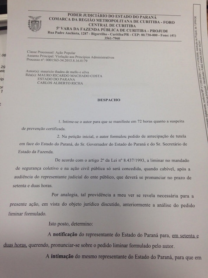 O pedido da Juíza foi realizado devido a ação popular impetrada pelo deputado Requião Filho (PMDB) que pediu tutela antecipada – liminar – para bloquear as contas do estado afim de garantir o cumprimento da lei da data base.