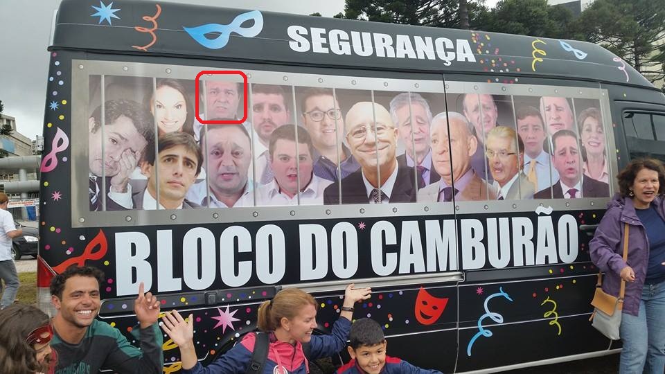O Deputado Estadual mourãoense Márcio Nunes (PSC) não escapou de ser homenageado no “Bloco do Camburão” que fez muito sucesso neste último domingo, 15, em Curitiba (foto)
