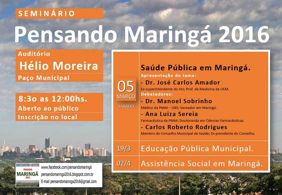 O projeto “Pensando em Maringá” discute neste sábado, 5, os problemas de saúde pública que a cidade enfrenta. O evento acontece no auditório Hélio Moreira no Paço Municipal.