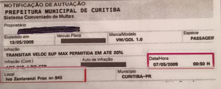 Após seis anos, uma multa de radar de uma infração cometida na Rua Monsenhor Ivo Zanlorenz, pode mudar a versão oficial no caso do acidente envolvendo o ex-deputado Luiz Fernando Ribas Carli Filho, que chocou o Paraná.