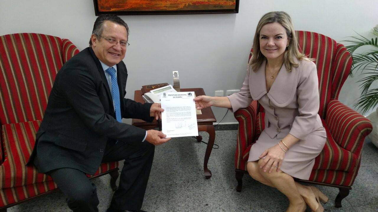 Uma dessas reuniões foi com a senador Gleisi Hoffman (PT). O prefeito tratou sobre a compra de equipamentos públicos para ajudar na manutenção de obras: “Temos obras em execução, mas muitos projetos para realizar e melhorar a qualidade de vida da população. Acreditamos que com parceria podemos avançar nesses projetos” disse Minchio.