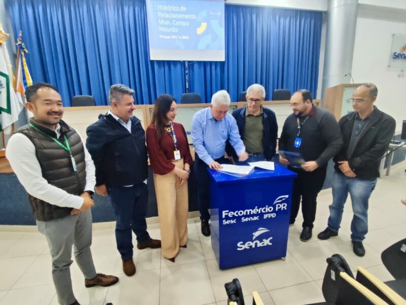 O prefeito Douglas Fabrício esteve reunido na manhã desta quinta-feira (17), com as direções do Senac e Sesc de Campo Mourão para assinatura de um convênio para um novo curso de qualificação profissional gratuito e reforçar a parceria com o Sistema S. O mais novo curso ofertado pelo Senac é de hamburger gourmet, em parceria com a Secretaria Municipal de Assuntos da Comunidade. São 15 vagas destinadas a alunos com idade mínima de 15 anos.