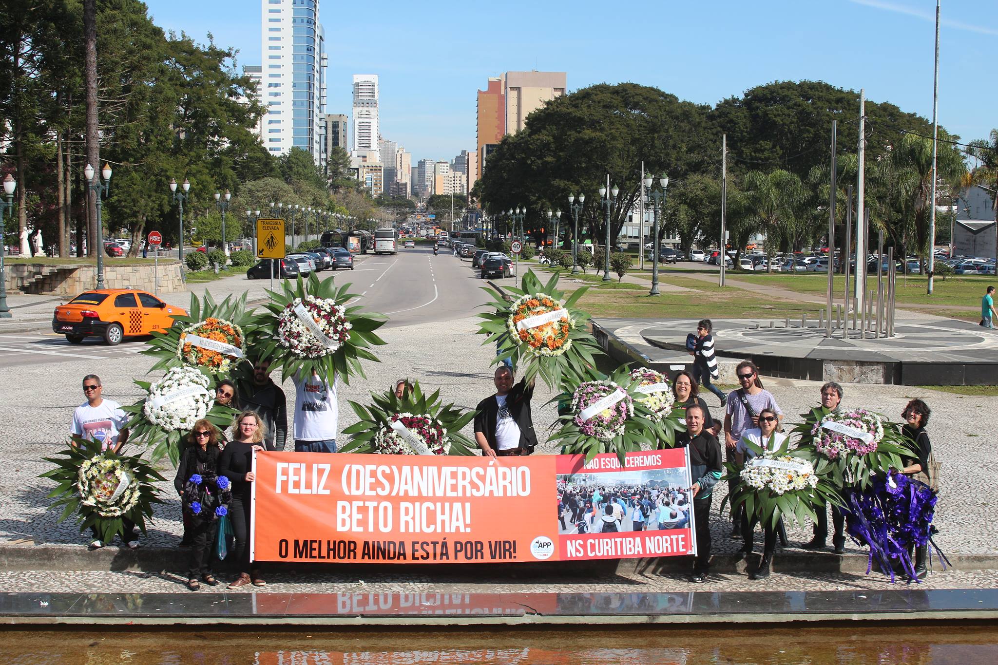 A atividade foi organizada pelo Núcleo Sindical Curitiba Norte, da APP Sindicato. Neste dia 29 de Julho, Richa completa 50 anos. A data coincide com os três meses do Massacre de 29 de Abril no Centro Cívico.