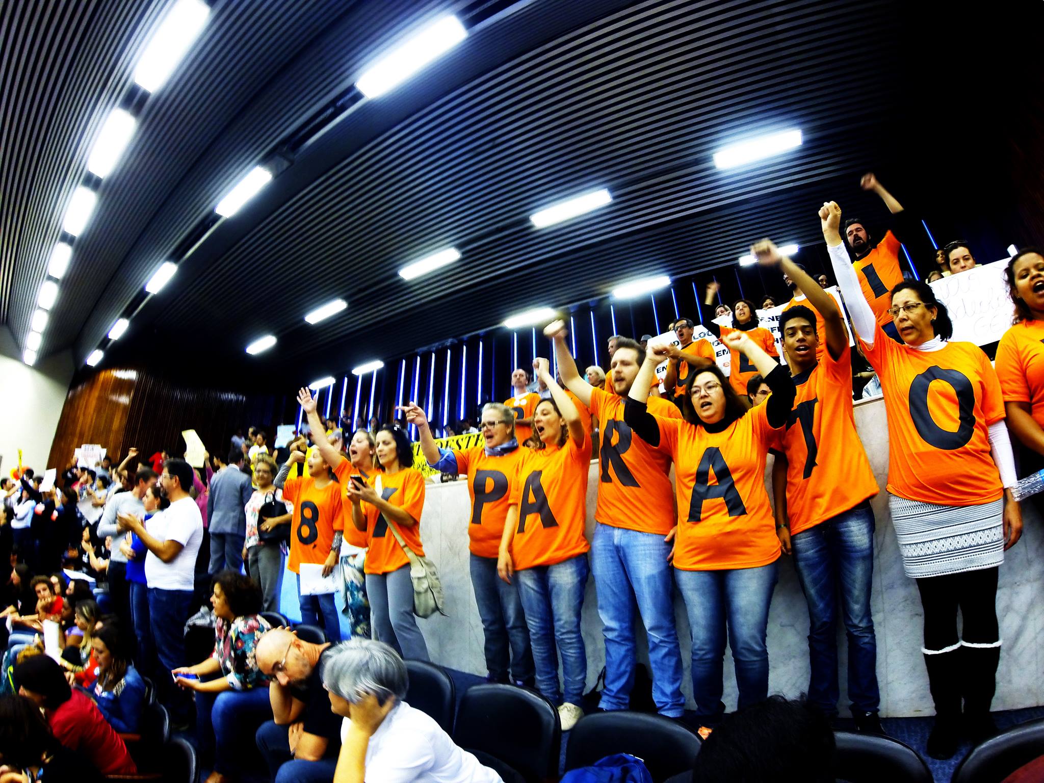 Nas galerias da Assembleia, os servidores já ecoavam: “Não vai ter sossego se votar na proposta dos pelegos” diziam.