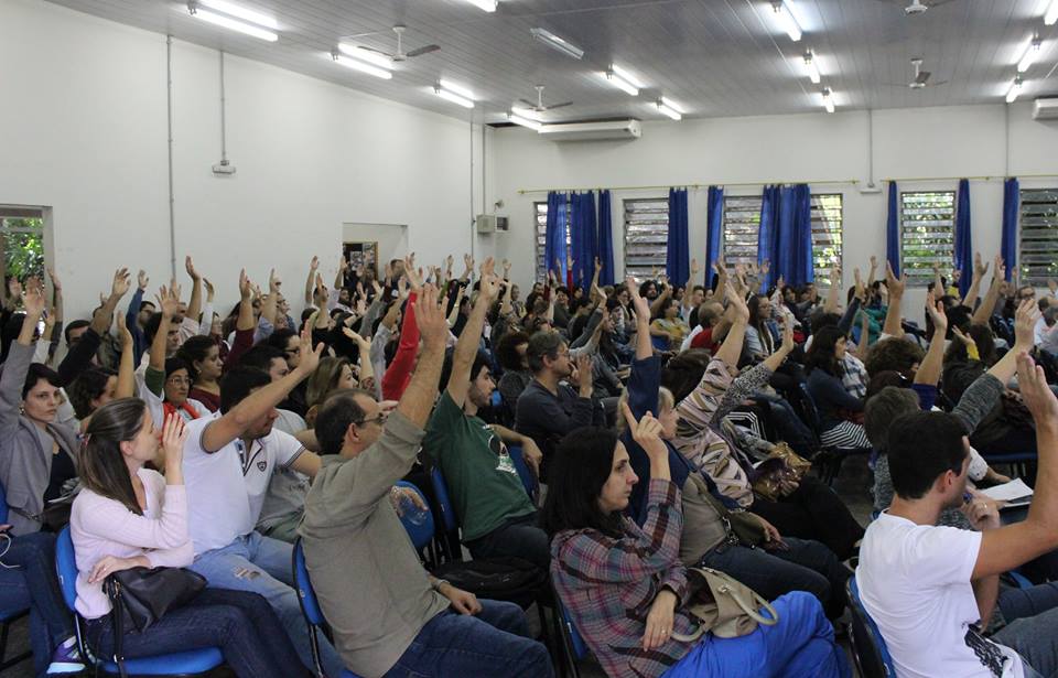 Os professores da Universidade Estadual de Maringá estiveram reunidos na tarde desta quarta-feira, 13, em Assembleia Geral extraordinária convocada pelo SESDUEM para deliberar sobre a greve na instituição.