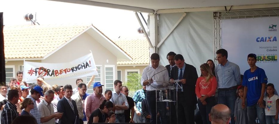 O Governador Beto Richa (PSDB) não tem vida fácil em qualquer parte do estado onde participa de algum evento público. Desta vez Richa foi recebido com protesto em Ponta Grossa nesta quarta-feira, 22, onde participou de uma cerimônia pública (foto).