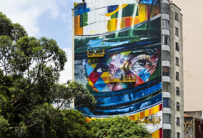 O painel foi pintado pelo artista Kobra, um dos pioneiros na arte de rua de São Paulo.