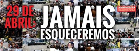 A APP Sindicato e outras entidades ligadas a professores e funcionários estaduais, como o SindUnespar, organizam por todo o Paraná, atos públicos para lembrar a passagem dos três meses do Massacre do Centro Cívico, quando mais de 200 professores, funcionários e demais servidores do estado ficaram feridos.