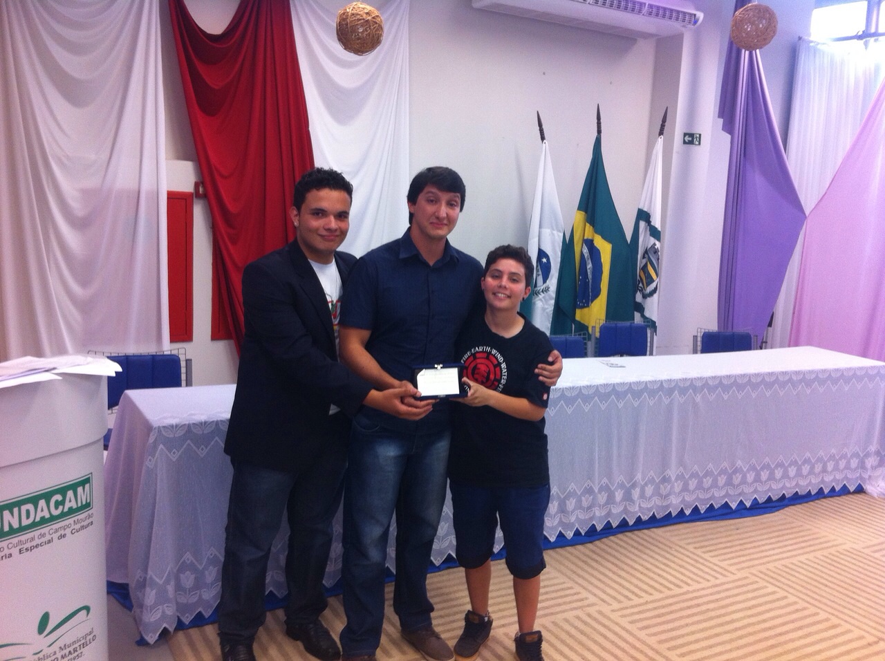 Recebendo a placa das mãos de Renan Mendes e Mitty Neves