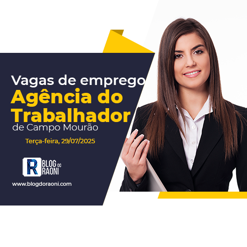 Vagas para esta terça-feira 29/07/2025 na agência do trabalhador de Campo Mourão