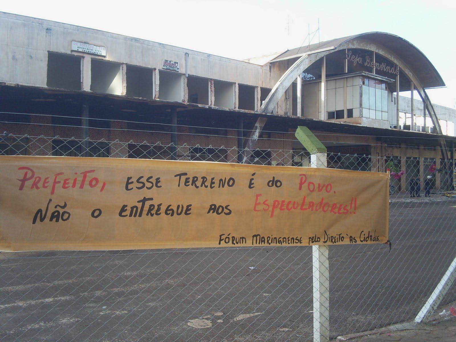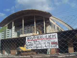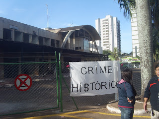 Fotos de hoje a tarde durante o ato contra a demolição do prédio da antiga rodoviária de Maringá. Fotos: Raoni de Assis.