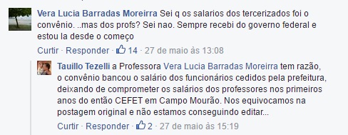 O Clima esquentou em Campo Mourão entre o vereador Pedrinho Nespolo (PSB) e o ex-prefeito Tauillo Tezelli (PPS). Tudo porque o ex-prefeito patrocinou uma publicação no Facebook em que afirmou que em sua administração a prefeitura “bancou salários dos professores e o custo mensal da Universidade por alguns anos” se referindo a UTFPR que à época de sua administração era CEFET.
